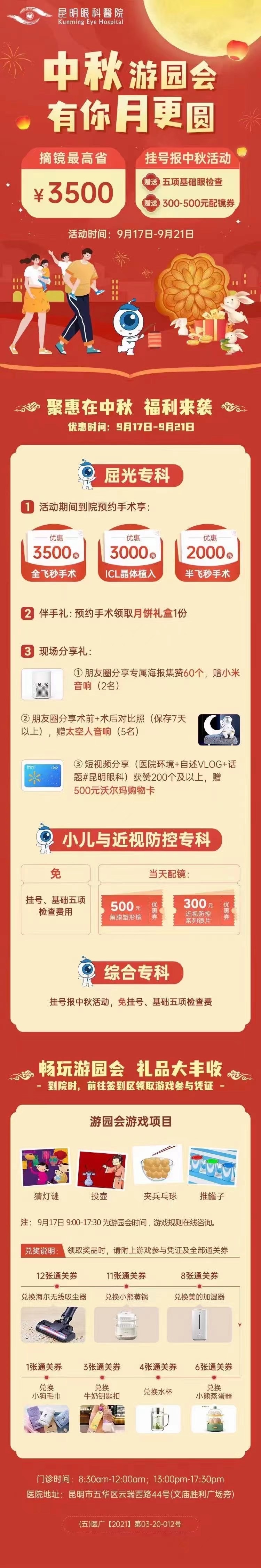 九月预约到昆明眼科做近视手术优惠高达4300元!